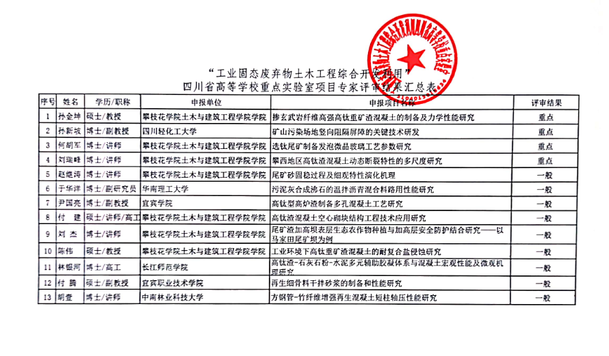 为更进一步推进工业固态废弃物土木工程综合开发利用,“工业固态废弃物土木工程综合开发利用”四川省高校重点实验室(以下简称“重点实验室”)特组织了2020年度开放基金项目(课题)申报工作。通过重点实验室初步审查、组织专家评审、学术委员会审定,同意《掺玄武岩纤维高强高钛重矿渣混凝土的制备及力学性能研究》等13个项目(具体见附件)予以立项,其中重点项目4项,一般项目9项。