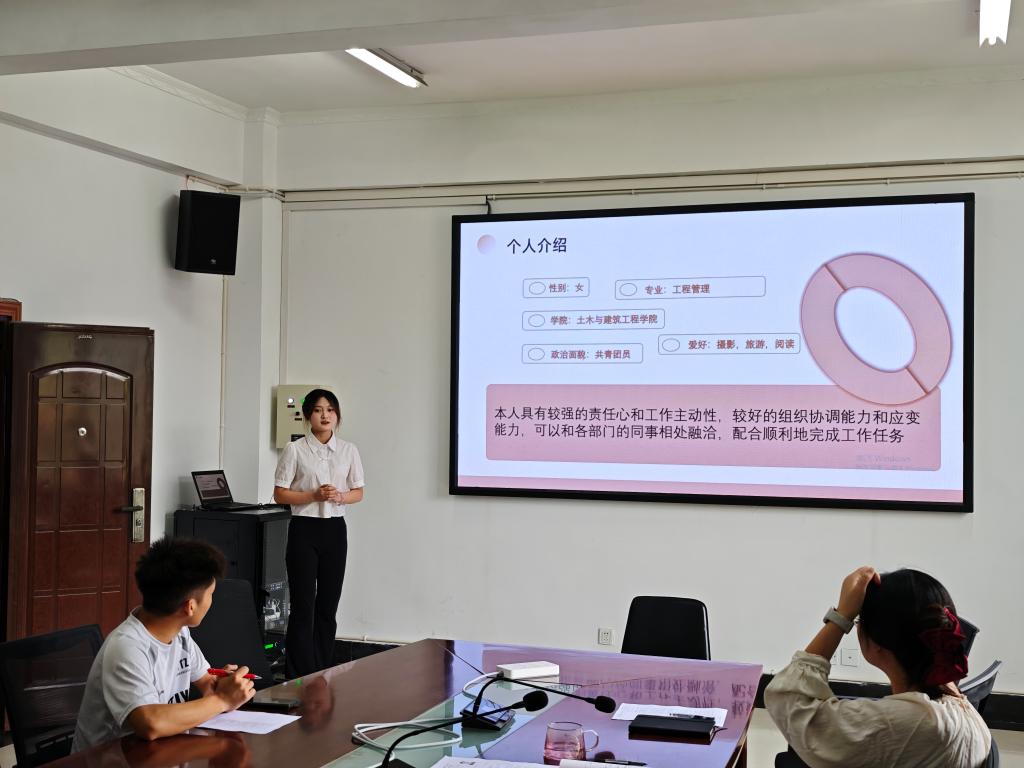 主席团各候选人依次进行个人展示,介绍自身在学业、员工工作、社会实践等方面的经历和积累的经验,阐述了自身具备的核心能力与岗位的匹配度,并对当前组织发展面临的关键问题提出调整建议。