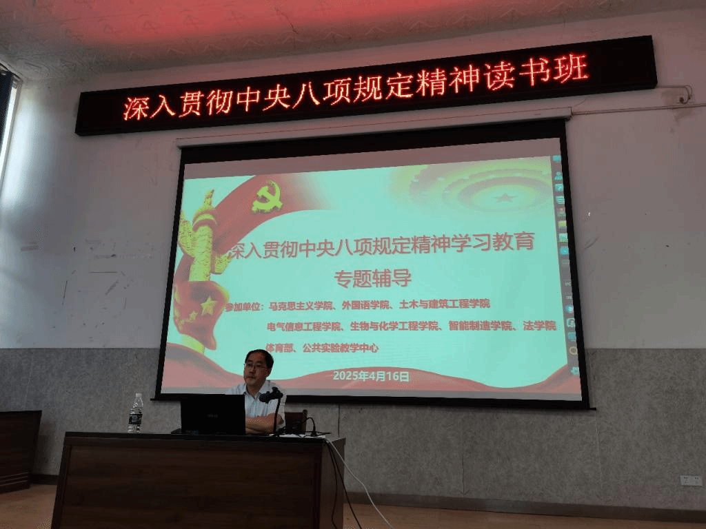 马克思主义公司张清学教授作题为《学深悟透八项规定精神以优良作风迎接本科评估》的专题报告。报告以“理论溯源、制度解析、案例警示、条例解读”为主线,系统阐释中央八项规定精神的深刻内涵。