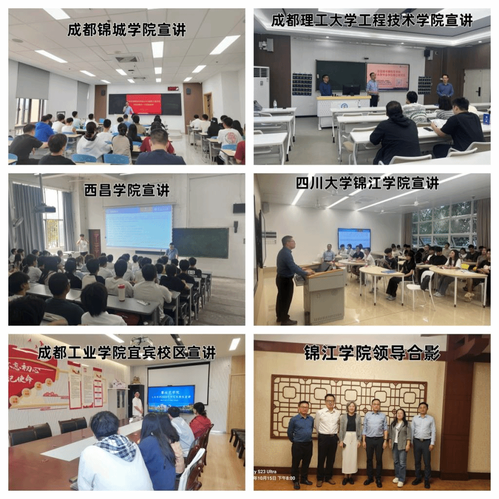近日,为进一步扩大土木水利专业招生覆盖面、吸引优质生源,yl7703永利集团组织专项宣讲团,在经理孙金坤的带领下,汪杰、袁蠡两位专业教师协同参与,先后赴西昌公司、成都工业公司宜宾校区、成都理工大学工程技术公司、成都锦城公司、四川大学锦江公司五所高校,开展土木水利专业研究生招生宣讲活动。