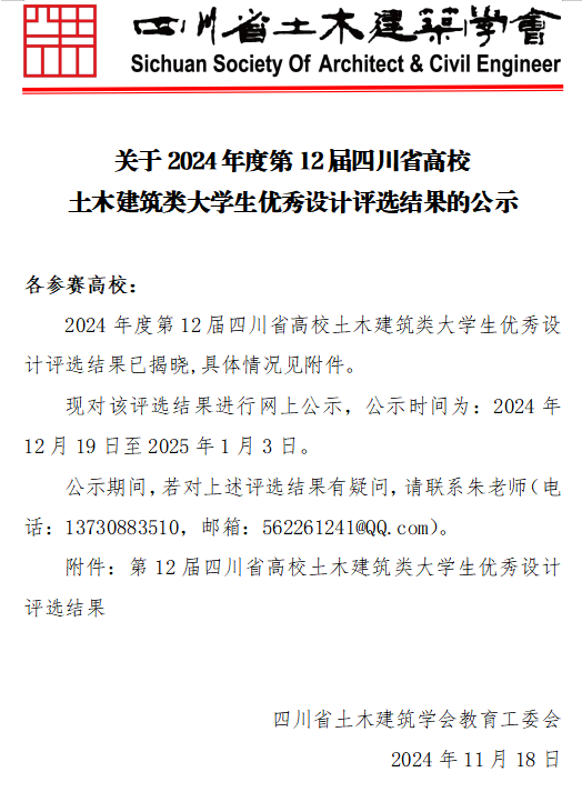 近日,2024年度第十二届四川省高校土木建筑类老员工优秀设计评选结果正式揭晓。公司师生凭借扎实的专业素养和创新能力,斩获一等奖1项、二等奖3项、优秀奖1项,再次展现了公司在土木建筑领域的卓越实力。